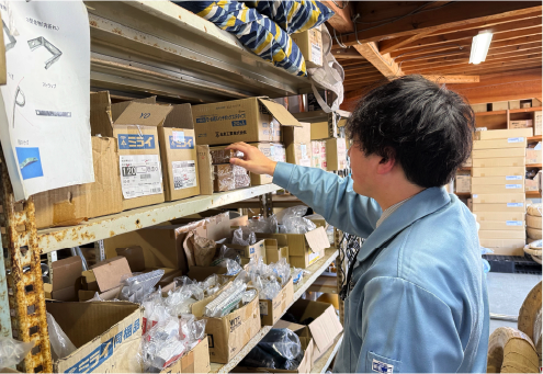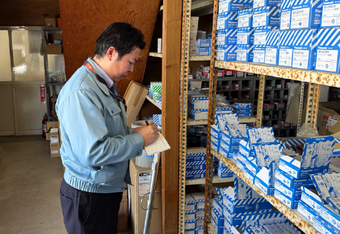 電気工事の需要にすぐに対応できるよう、ある程度の在庫をストックしているため、在庫数が不足しないように管理しています。在庫数を確認し、不足している商品の注文をします。