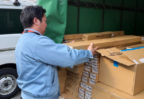 複数の運送会社の方が資材を営業所に届けてくれます。配達を間違いなくできるよう、入荷資材の仕分けを行ったり出荷用の伝票処理をスムーズに行ったりします。伝票はシステムで管理をしているので効率的に業務はできますが、非常に多くの資材が届くので午前中が最も忙しい時間帯となります。